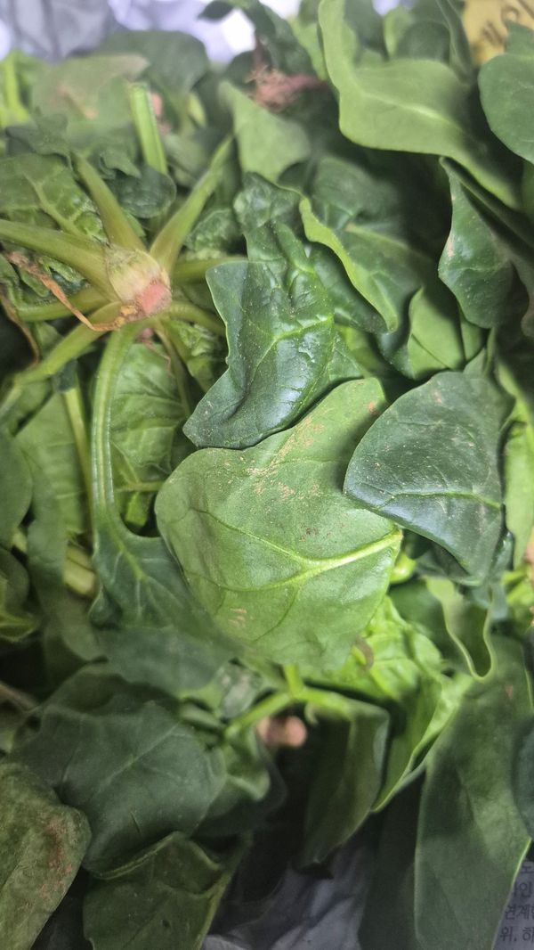 시금치가 잎이 크긴하지만 엄청 싱싱합니다 된장국이랑 나물 해 먹을려고 샀어요