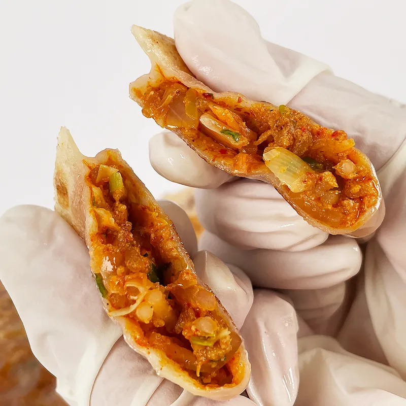 100% 국산 돼지고기와 신선한 채소로 만듭니다. 국산 배추, 무, 고춧가루 등으로 담근 김치를 사용합니다.