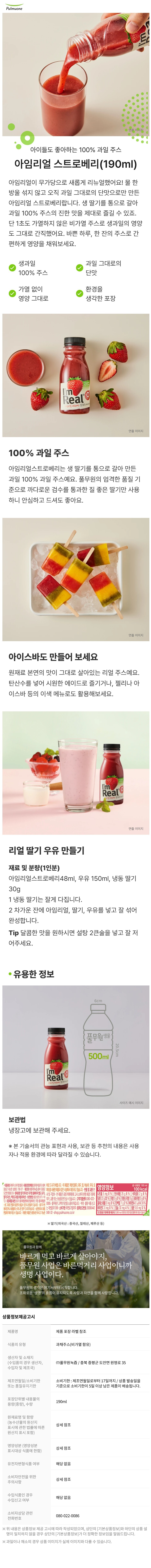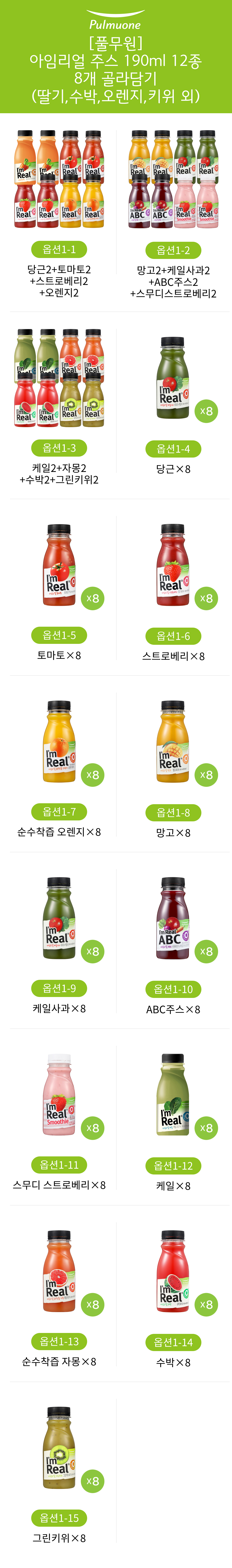 [풀무원] 아임리얼 주스 190ml 12종 8개 골라담기 (딸기,수박,오렌지,키위 외)