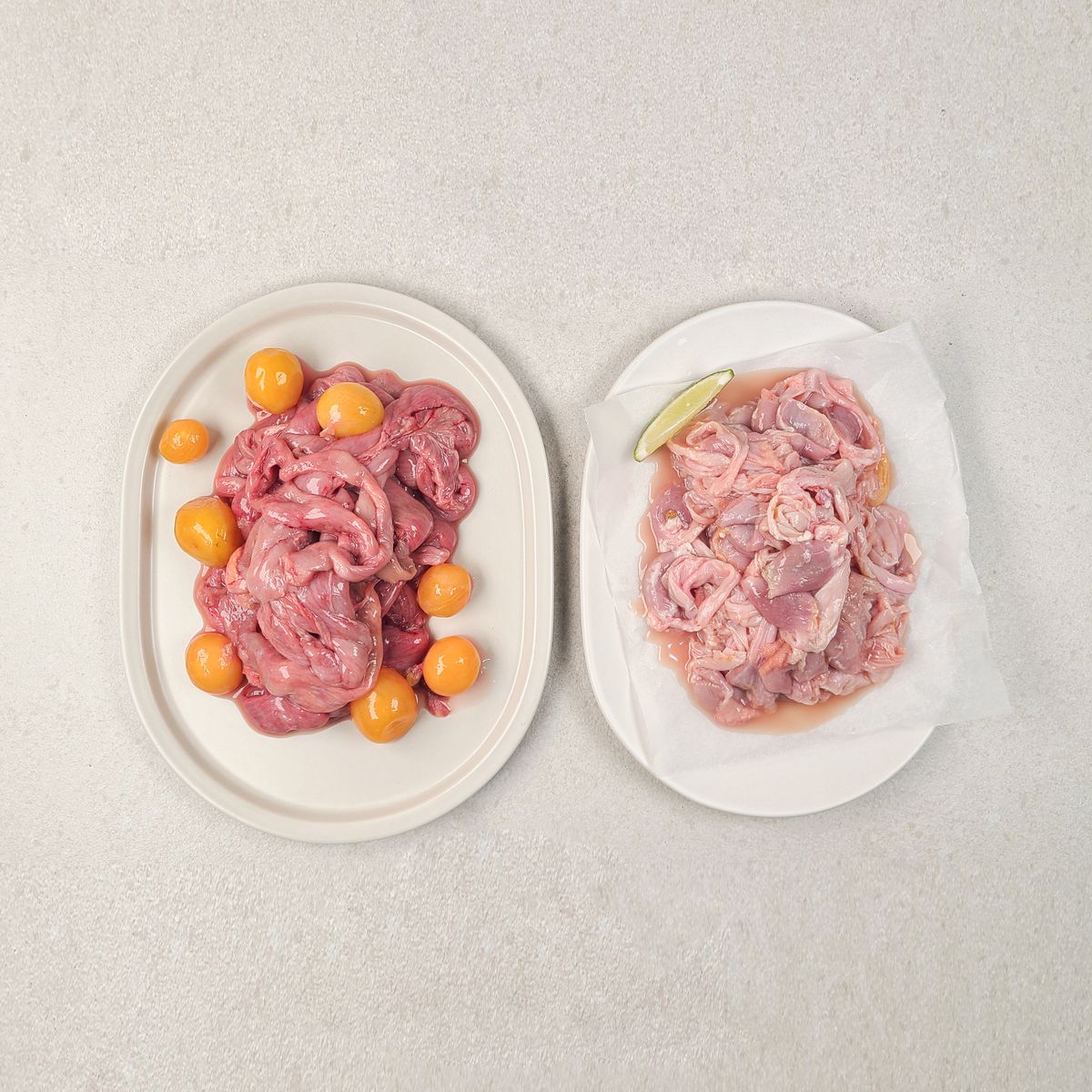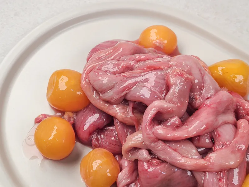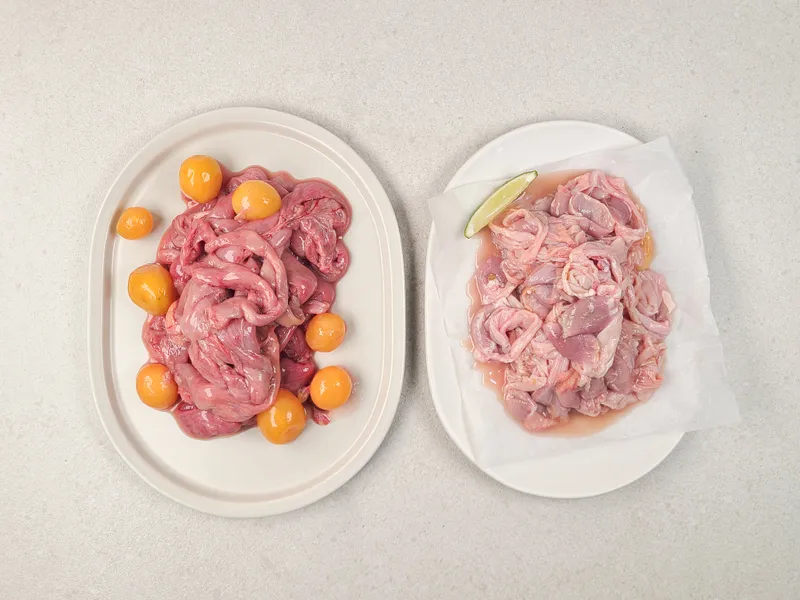 쫄깃한 닭곱창과 탱글한 알집을 함께 담은 구성입니다. 곱창은 부드럽게 씹히면서도 고소한 감칠맛이 진하게 남고, 알집은 익힐수록 탱글하게 살아나는 식감이 매력적이에요. 불순물 없이 깔끔하게 손질되어 잡내 걱정 없이 조리할 수 있답니다. 양념이나 구이에 활용하면 별다른 재료 없이도 진한 맛을 즐기실 수 있어요.