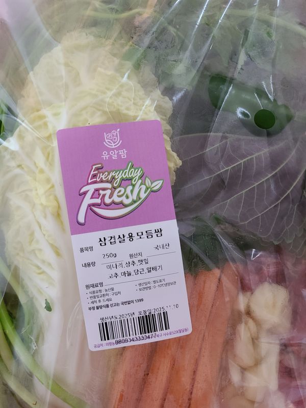갓 수확한 삼겹살용 국내산 모둠채소 250g*1팩