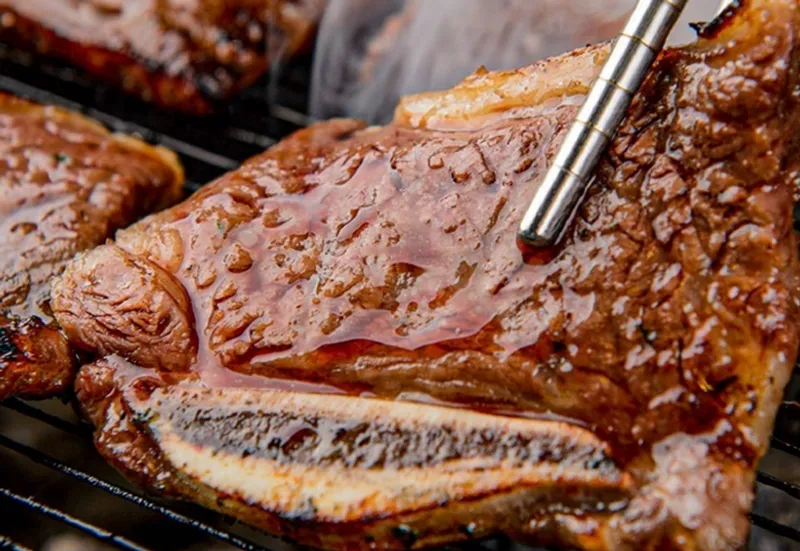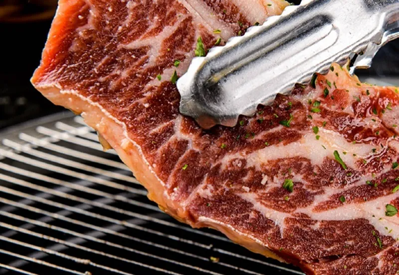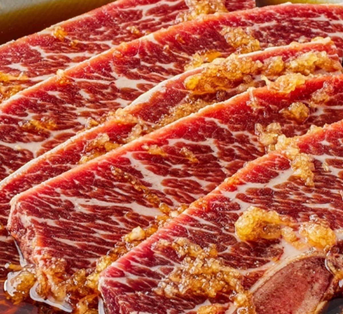 가정에서 조리할 때 맛있는 두께인 9mm로 만들어 씹는 맛과 육즙이 살아 있습니다. 고기의 핏물을 제거할 때 솔잎가루 녹인 물을 사용하여 이취를 완벽하게 잡았습니다.