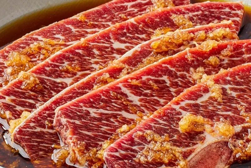 1976년부터 이어온 비법 양념의 배합비 그대로 만듭니다. 고기의 연육과 최적의 간을 위해 수십 년 지속되어 온 '그' 양념으로 재웠습니다.
