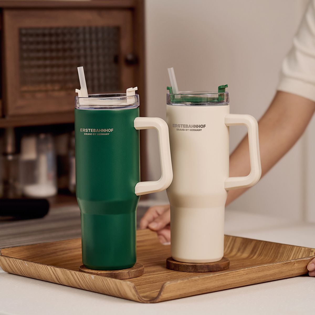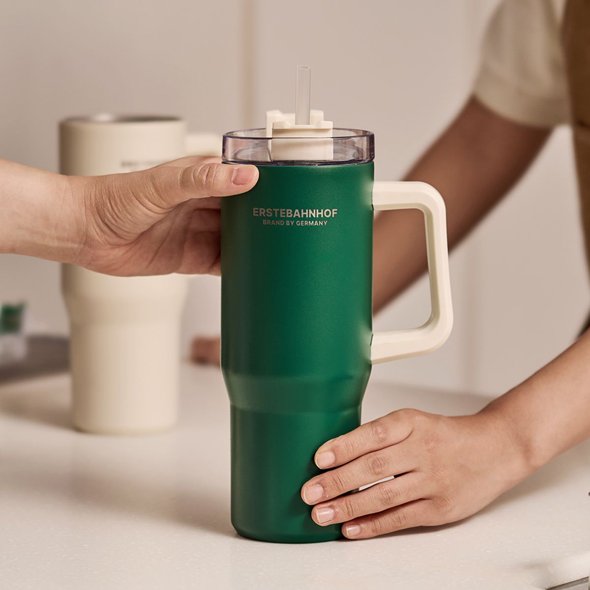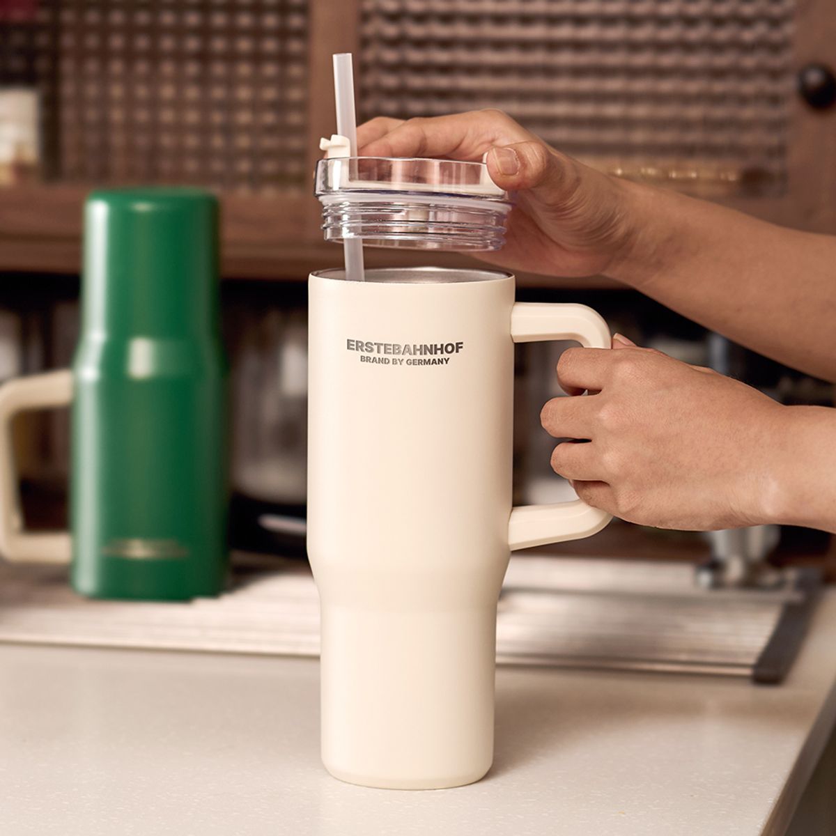 모던한 스텐 304 바이브 텀블러 2색(그린/크림) 887ml