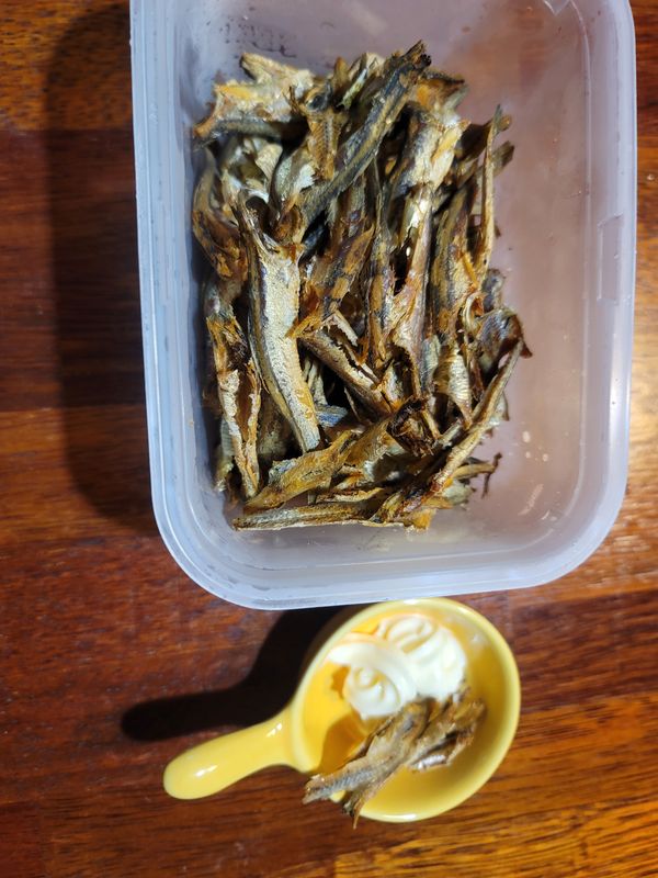훈제멸치 독특하네요 마요네즈와 잘어울려요