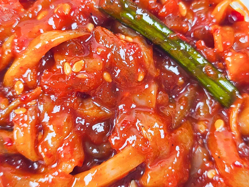 매콤한 양념에 버무려 숙성시킨 대표 젓갈이에요.