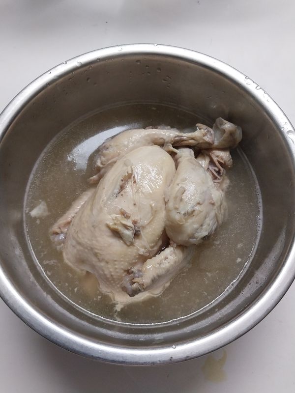 손질된 국내산 닭 한 마리를 통째로 넣고 오래 푹 끓였어요.