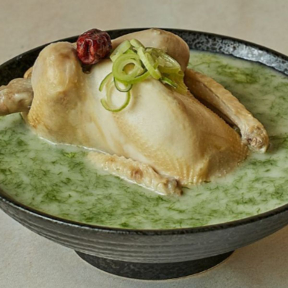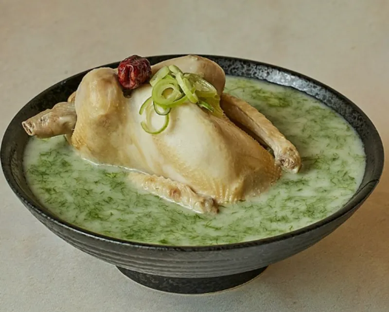진한 삼계탕에 바다향 가득한 참매생이까지 더해 '진짜' 별미 삼계탕을 완성했습니다. 100% 완도 참매생이를 사용해 시원하면서도 감칠맛 있는 국물이 끝내줍니다!