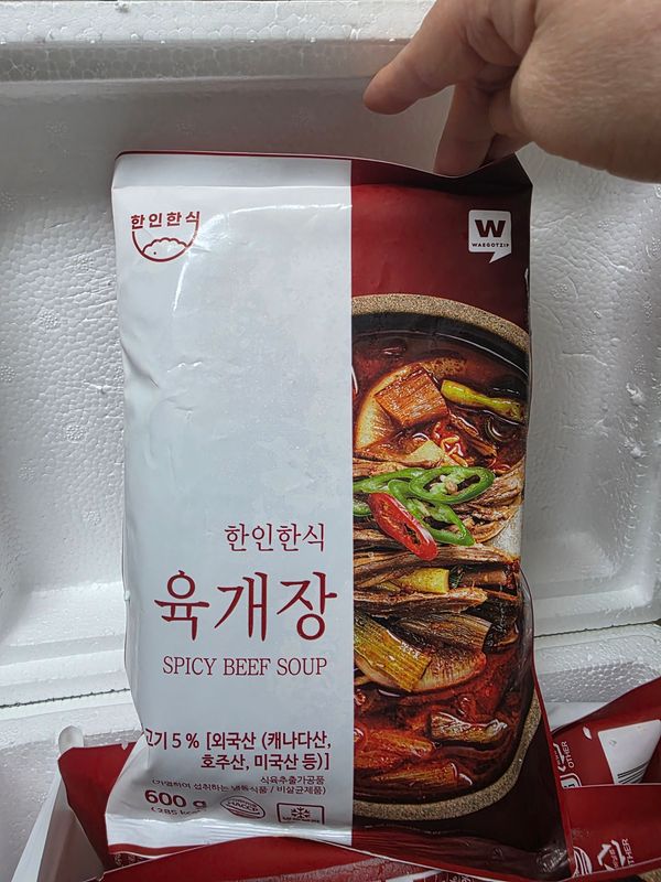 포장도 깔끔하고 배송도 빠르게 와서 좋았어요 저보단 신랑이 육계장을 좋아해서 구매했는데 저렴하고 맛도 좋았어요 신랑이 괜찬다고하고 근대 국물이 좀 적어요 좀더 있었으면 좋을꺼같아요 암튼 맛있어요