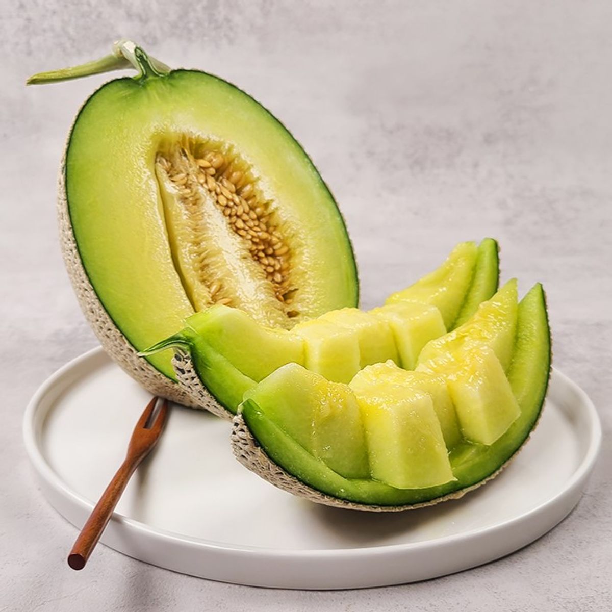 멜론 중에서도 진한 향을 자랑하는 얼스멜론은 반으로 가르는 순간 달콤한 향이 확~ 올라와요. 부드러운 과육을 가지고 있어, 한 입 베어 물면 촉촉하고 달콤한 과즙이 흘러넘치죠.
