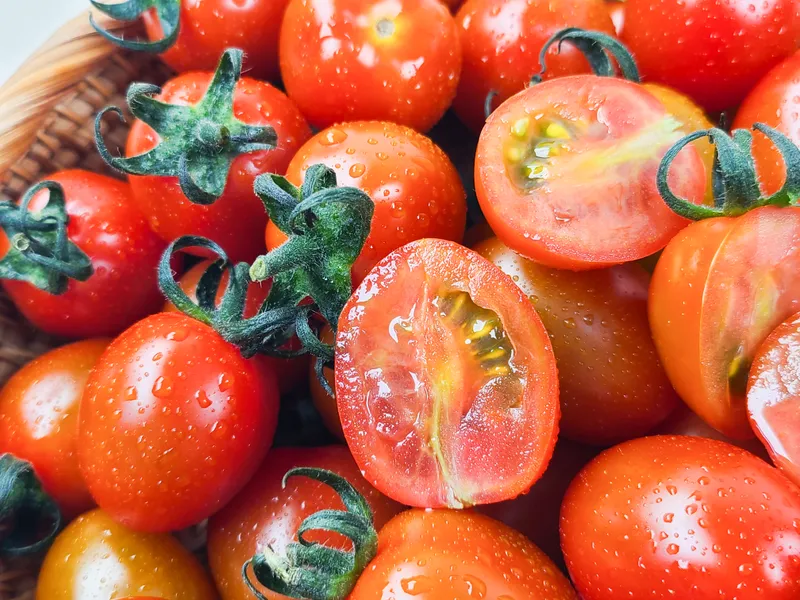 방울방울~ 먹음직스러운 모양새의 방울토마토를 만나보세요. 망고 향을 입힌 특별한 방울토마토에 스테비아까지 함유하여 더욱 달콤하게 즐길 수 있습니다. 토마토 맛에 달달한 망고 향까지 느껴져 더욱 맛스러운 방울토마토예요!