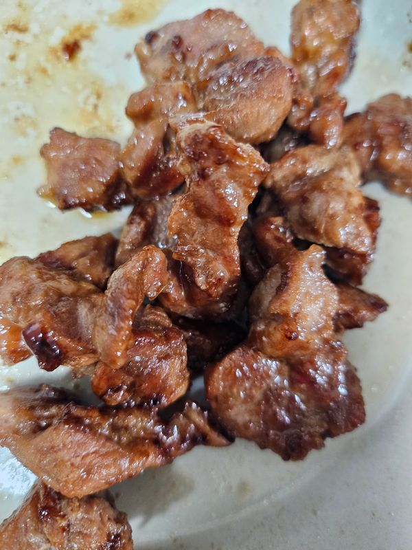 약간 냄새가 나네요. 기름기는 많지 않아서 좋은데 식감은 씹는맛을 좋아하시는 분에게는 호이고 그렇지 않으면 불호일것 같아요. 양념은 다 넣지 않고 반절만 넣어 조리했는데 딱 좋았습니다.