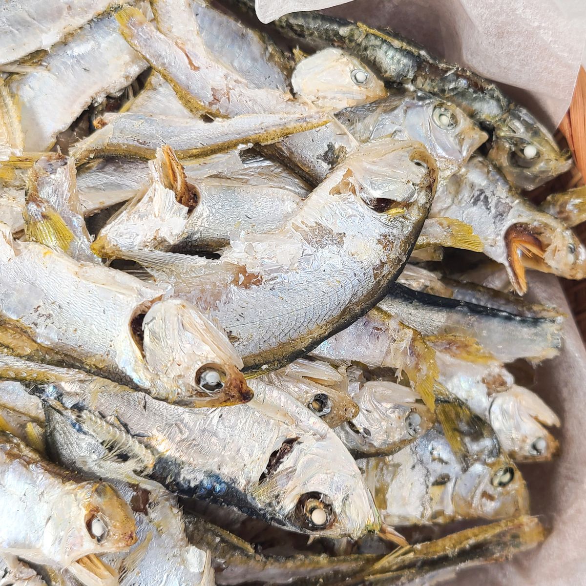 일단 양이 엄청 많았어요! 오자마자 신문지 펼치고 이틀 빠짝 말린후 소분해서 냉동고에 넣어두었어요! 그리고 멸치, 새우랑 육수를 냈는데 엄청 진하고 맛있더라고요! 짱입니다!!