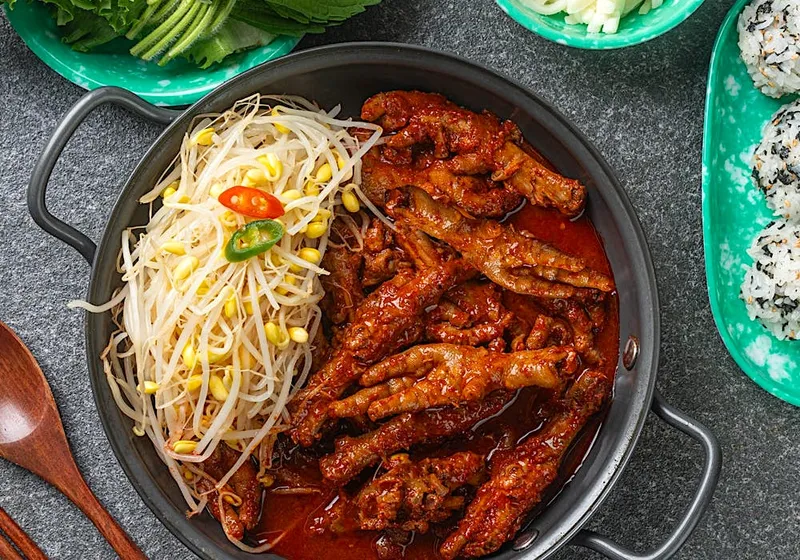 특제 양념이 닭발과 완벽하게 어우러져 매콤하면서도 깊은 풍미를 선사해요. 칼칼한 국물이 입안 가득 퍼지며 진한 감칠맛을 전달합니다. 깔끔하게 칼칼해 자꾸만 손이 가요.