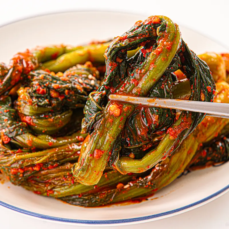여수의 해풍을 맞아 톡쏘는 맛이 일품인 돌산 갓을 사용해 질리지 않고, 특유의 풍미와 독특한 맛을 살렸습니다. 다른 갓보다 톡쏘는 맛과 섬유질이 적어 연하고 부드럽습니다.