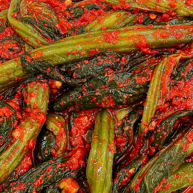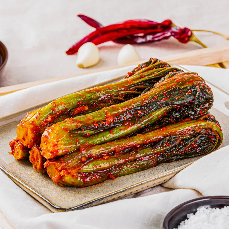 아삭함이 남다른 갓김치는 톡 쏘는 풍미가 참 매력적입니다. 오래 숙성할수록 톡쏘는 알싸함이 일품입니다! 오로지 국내산 재료로만 사용했기 때문에 신선함은 장담합니다. 드셔만 보세요!