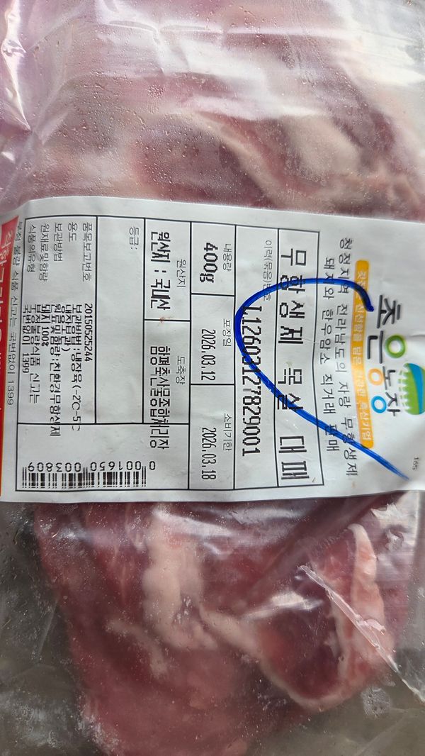 옵션: 무항생제 대패목살(냉장) 400gx2팩(총800g)