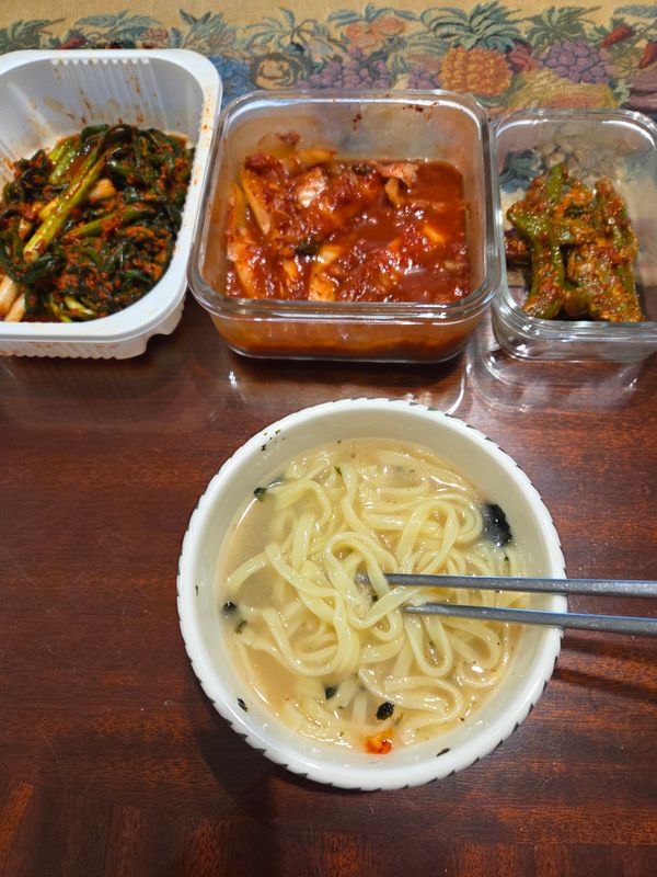 감칠맛 나는 국물과 부드러우면서 쫄깃한 면이 환상의 조합인것 같습니다 호박과 당근을 넣어서 먹으니 일부러 찾아가는 맛집과 비쿄해도 손색이 없네요. 잘 먹었습니다
