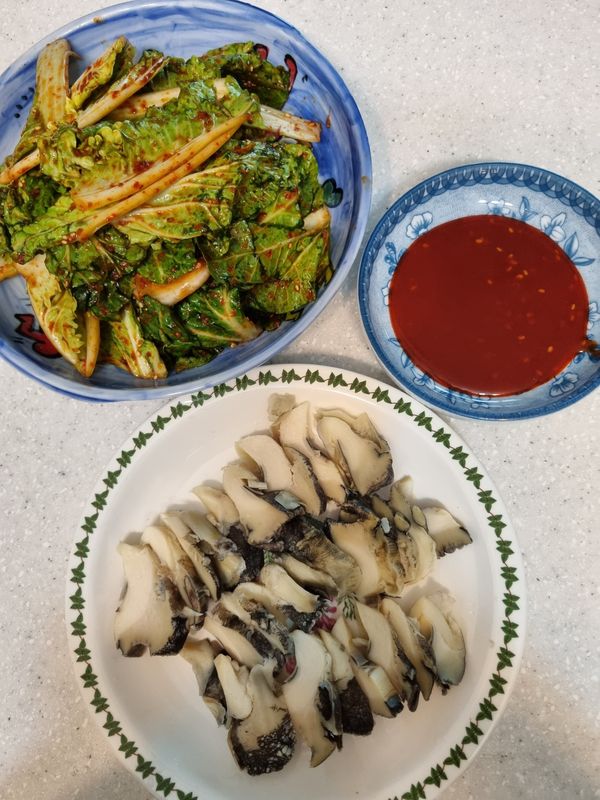 집에서 끓는 물에 살짝데쳐먹었더니 맛있습니다 근데 너무 비싸요 딱 3알이 28000이라니!