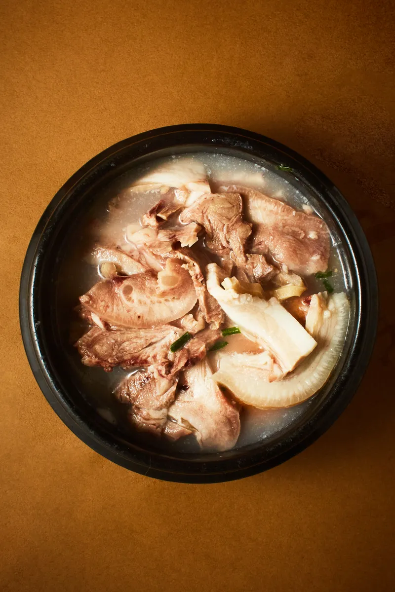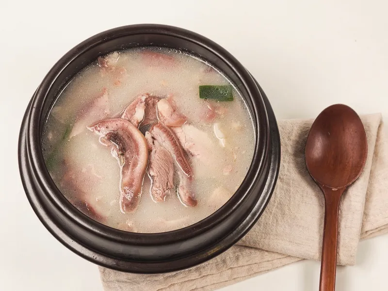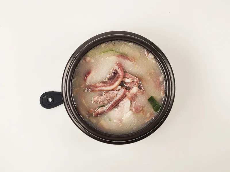 국내산 돼지뼈와 사골 육수로 진한 국물 맛을 표현했어요. 여기에 부드러운 돼지고기와 쫄깃한 내장을 가득 넣어 더욱 담백하면서도 고소한 풍미를 더했답니다. 깊은 국물 맛에 한 번, 야들야들 쫄깃한 고기 맛에 한 번! 이거 정말 진국인데요?