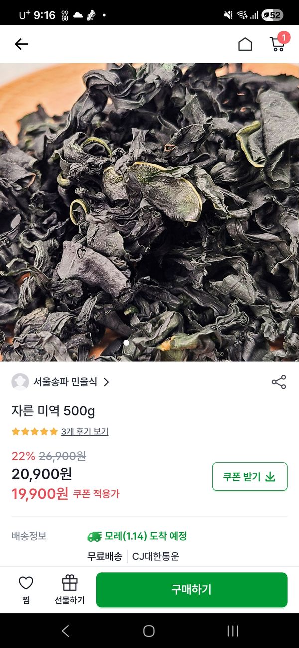 미역 완전 좋습니다 앞으로 쭉 여기 찐단골할거에요