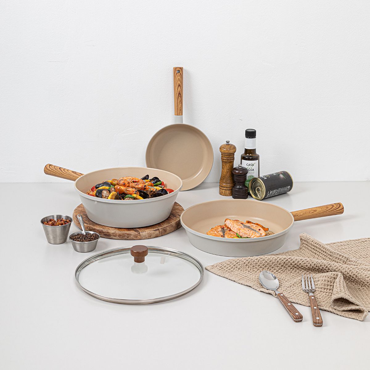 편리한 IH 티타늄코팅 후라이팬 3종세트 (20cm 후라이팬+28cm 후라이팬+28cm 궁중팬+유리뚜껑 1p)