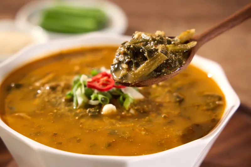 체에 곱게 내린 미꾸라지, 시래기, 된장, 들깨 등을 가마솥에서 오랜 시간 푹 끓여낸 남원 추어탕입니다. 칼칼한 원주식이나 개운한 경상도식과 달리 된장과 들깨가 들어가 걸쭉하고 시원한 맛이 아주 좋습니다. 푸짐하게 즐기실 수 있도록 시래기까지 듬뿍 넣었습니다.
