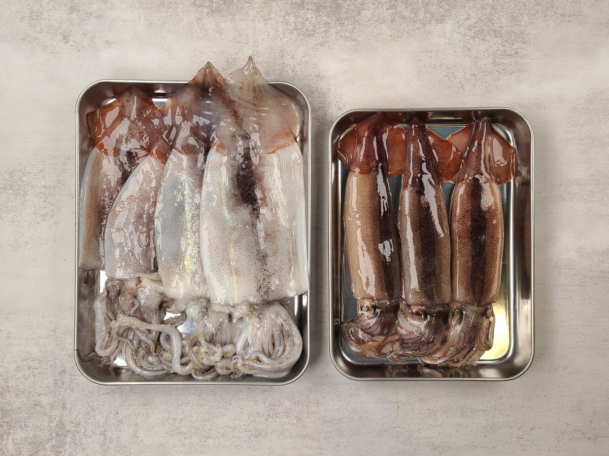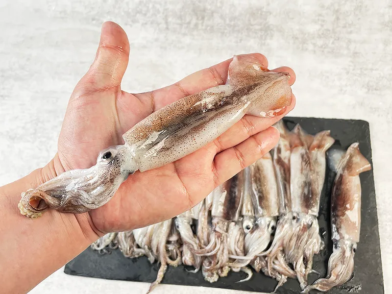 먹기 좋은 적당한 크기에 얼리지 않은 생오징어라 특유의 쫄깃한 식감이 살아있습니다. 특히 통으로 쪄서 드시면 내장의 고소하면서도 녹진한 맛이 아주 최고입니다!