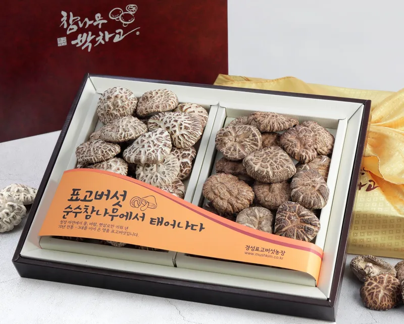 표면의 하얀 균열이 매력적인 백화고와 깊은 맛을 자랑하는 흑화고를 한 세트에 담았어요. 버섯 특유의 감칠맛과 달큼한 풍미가 조화롭게 어우러져요. 구수한 향과 쫄깃한 식감까지 더해져 더욱 특별한 맛을 선사해 드려요.