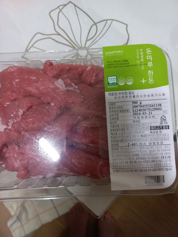 얼음팩도 안녹고 생생하게 배달된것같아 만족스러워요~~근데 겉에 막이 살짝 덜 손질된것같아 가위로 잘라냈어요 돈까스용 보다는 탕수육용으로 잘라온듯 하네요 크기가 작아요 그래도 색깔도 이쁘고 만족스럽습니다~^^