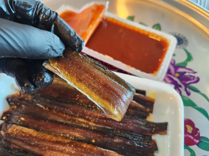 발과메기는 그물방(발)에 눕혀 건조하여 기름이 배를 중심으로 고르게 퍼져 더욱 촉촉한 식감이 살아있어요! 꾸덕꾸덕하면서도 쫄깃한 식감까지, 크~ 정말 별미가 따로 없어요!