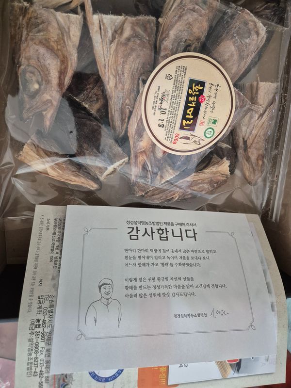 박스 여는 순간 황태 향이 너무 좋았어요 김장때마다 육수 내어 양념하는데 올해도 맛난 김장 될거 같습니다