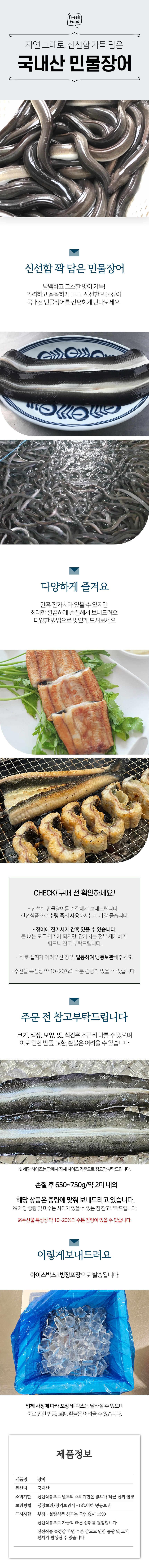 국내산 자포니카 민물장어 2미 손질후중량 650g