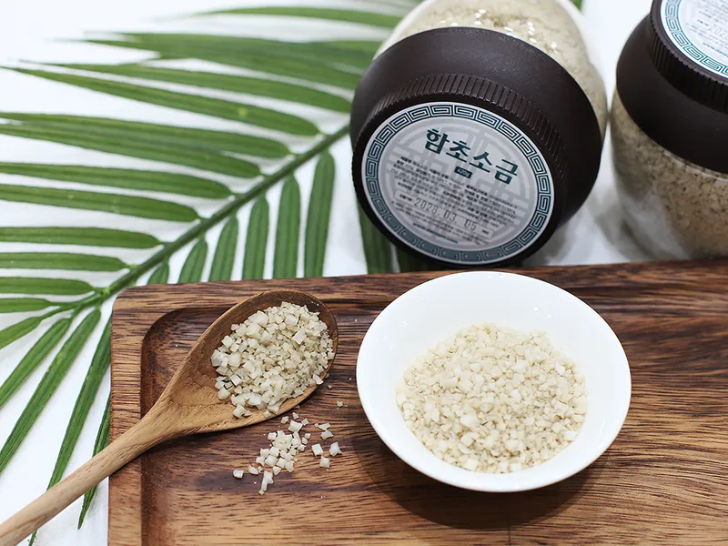 3년 묵은 신안 천일염에 '바다의 산삼'이라 불리는 함초를 더했습니다. 천일염 85%에 함초 분말 15%가 함유되어 있습니다. 풍부한 영양분을 함유한 고소하고 맛있는 소금입니다.