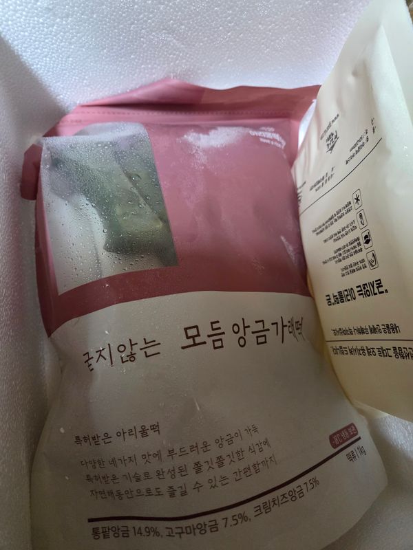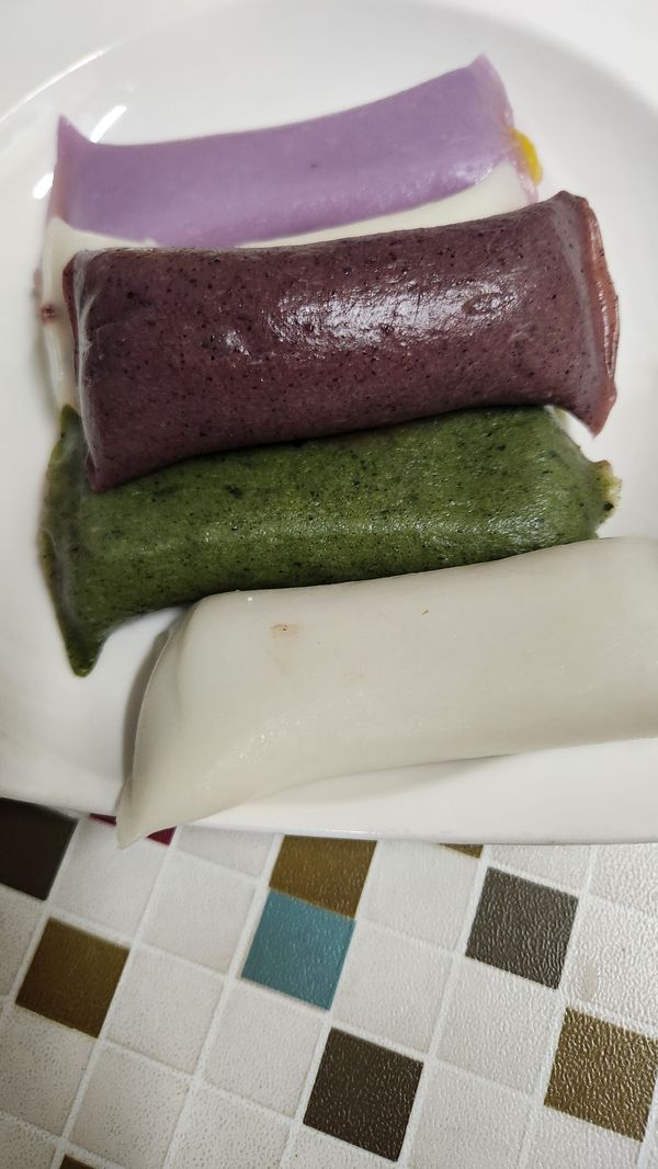 받자 마자 냉동 넣고 먹을때 꺼냈는데 다른색 떡은 다 녹아서 말랑 해지는데 쑥색 떡만 뻐등해요 맛은 관찮았어요