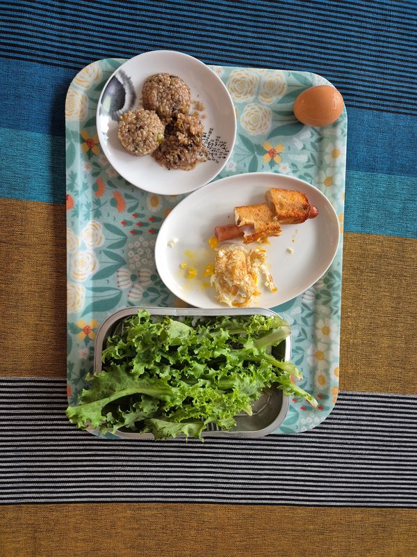 어린잎 샐러드에 삶은계란과 단호박 함께 먹으니 맛있네요