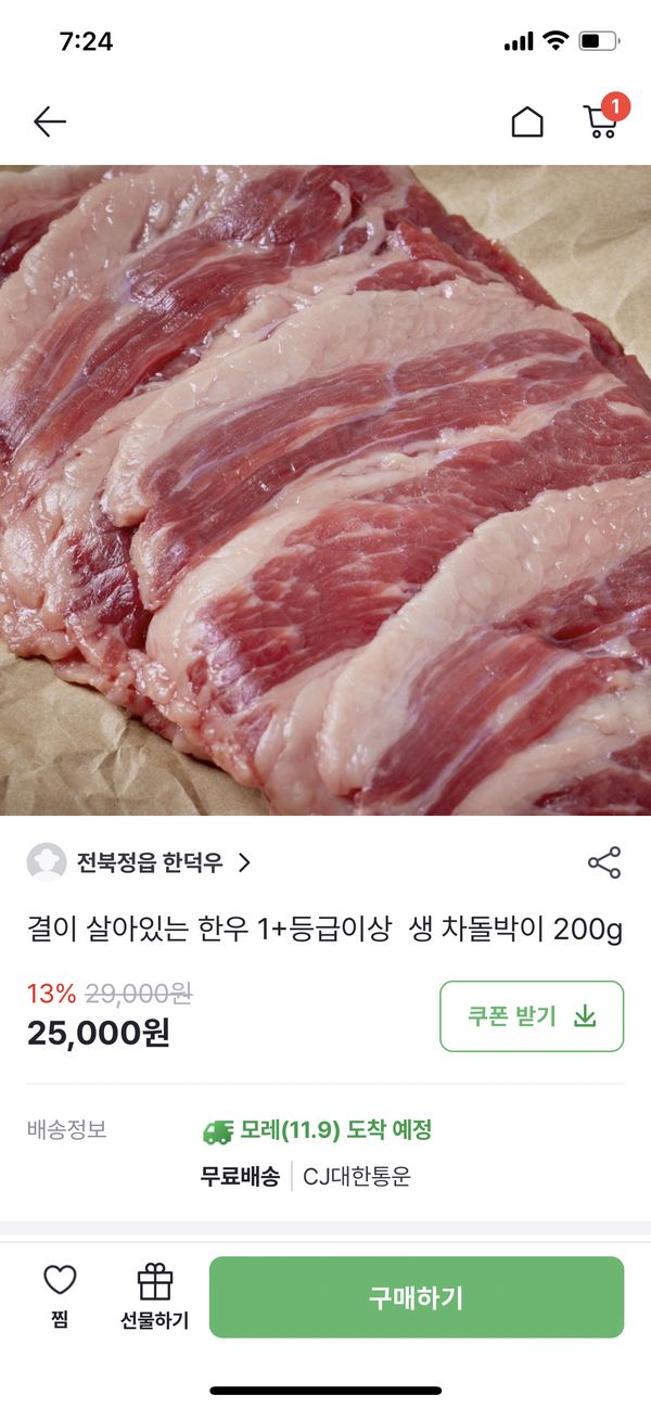 생각했던거 보다 맛있어요 고기가 부드러워요 특수부위랑 같이 샀는데 아이들이 차돌을 더잘먹어요 다음에도 재구매의사 있습니다 사진은 못찍었네요