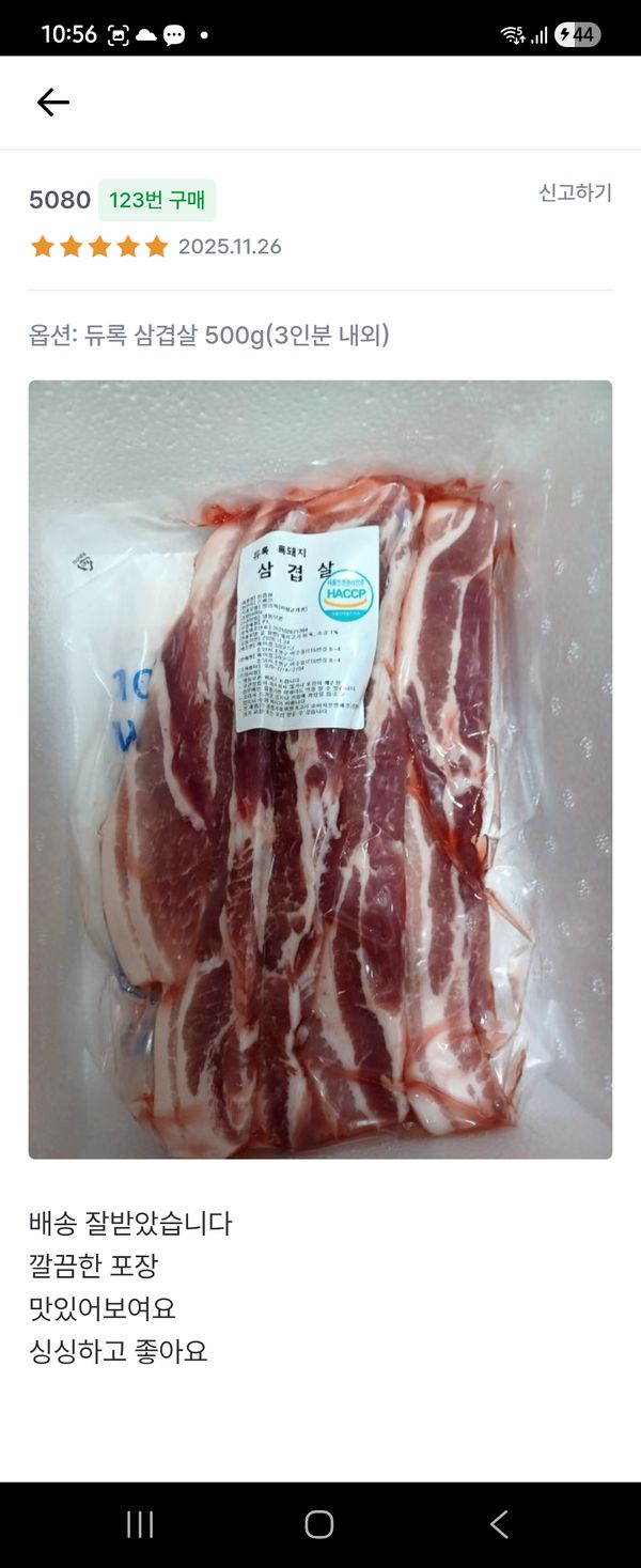 고기의 상태가 신선하고 육질과 맛이 좋아 재구매합니다