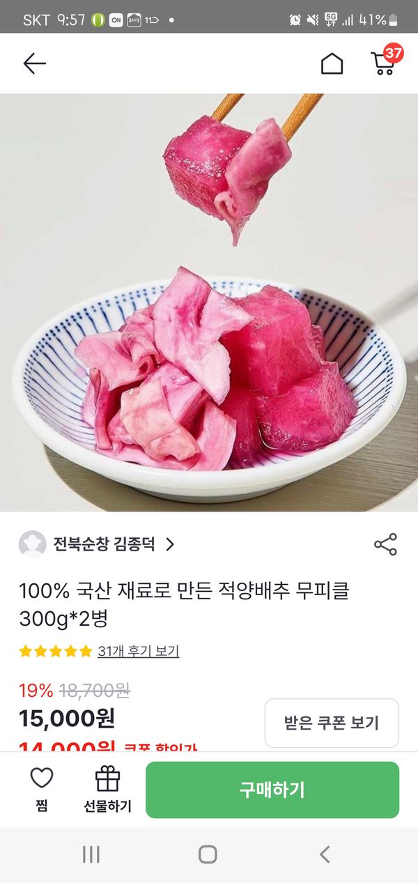 옵션: 적양배추무피클 300g*2병