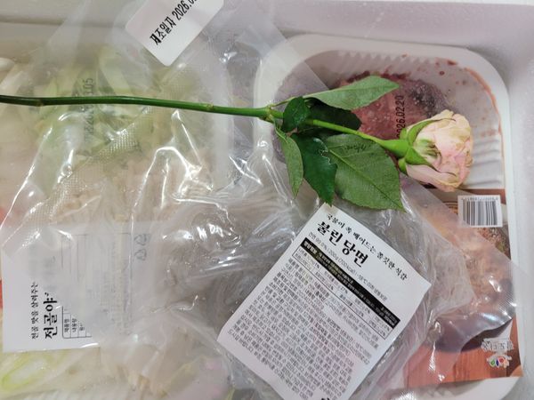 고기는 부드럽고 간은 슴슴해서 맛있게 먹었습니다. 장미한송이.식혜도 감사드립니다.^^
