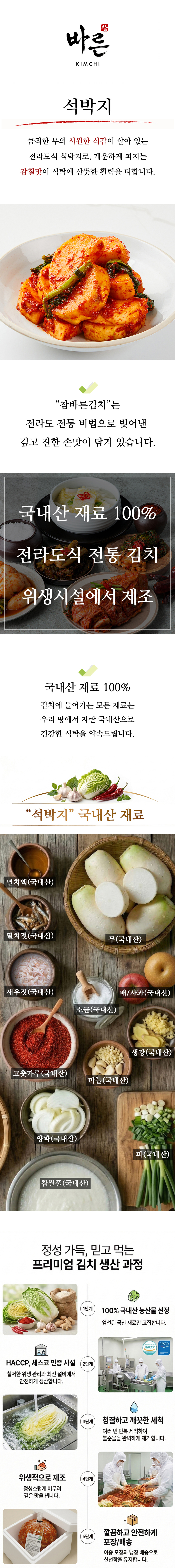 참바른김치 프리미엄 국내산 김치 석박지 1kg / 바른재료 바른위생 바르겟
