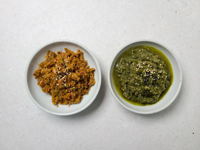 밥에 비벼 먹거나 고기에 곁들여 먹기 좋은 고추다대기입니다. 기본 맛과 된장맛, 두 가지 풍미로 입맛에 맞게 즐겨보세요. 매일의 식탁에 맛있는 포인트를 더해줍니다.