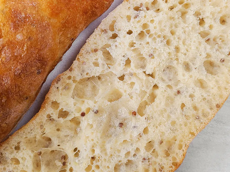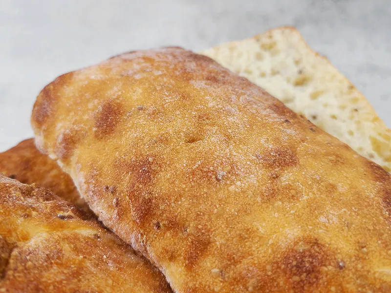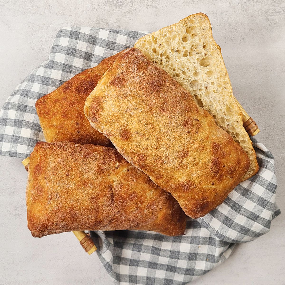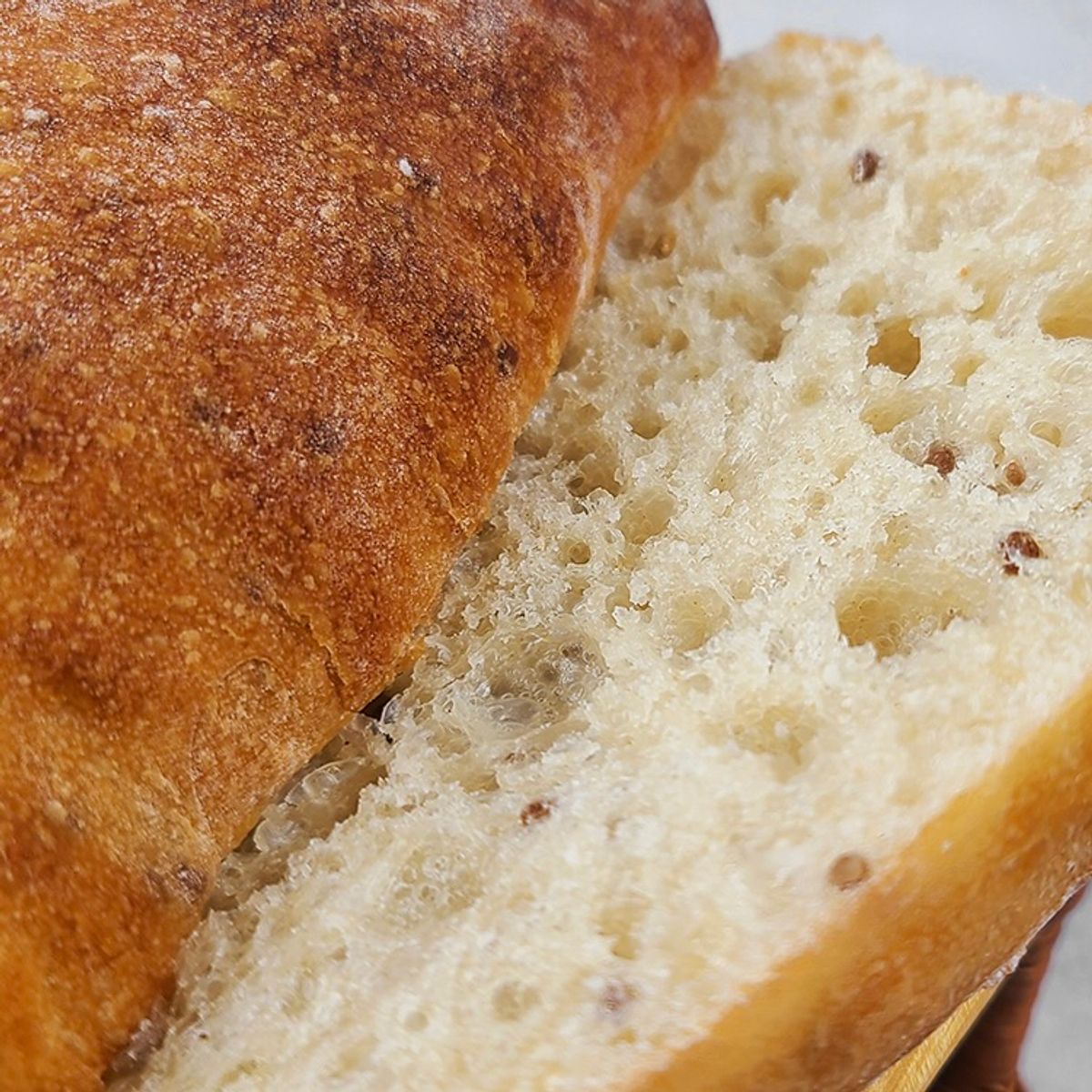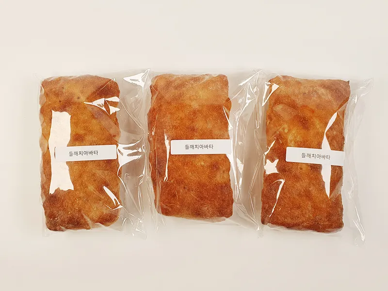 극강의 고소함을 자랑하는 통 들깨와 쫄깃하고 담백한 치아바타빵이 만나 잘 어우러져요. 조청의 은은한 달콤함까지 더했답니다. 재료 각각의 풍미가 정말 조화로운, 군더더기 없는 빵이에요.
