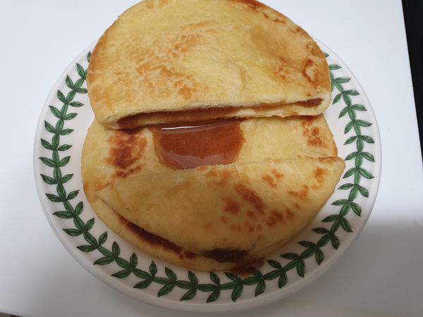 호떡의 질감은 느낄수 없고 밀가루 냄새가 나요. 뜨거워 입천장 데이지 않게 조심해서 먹어야해요