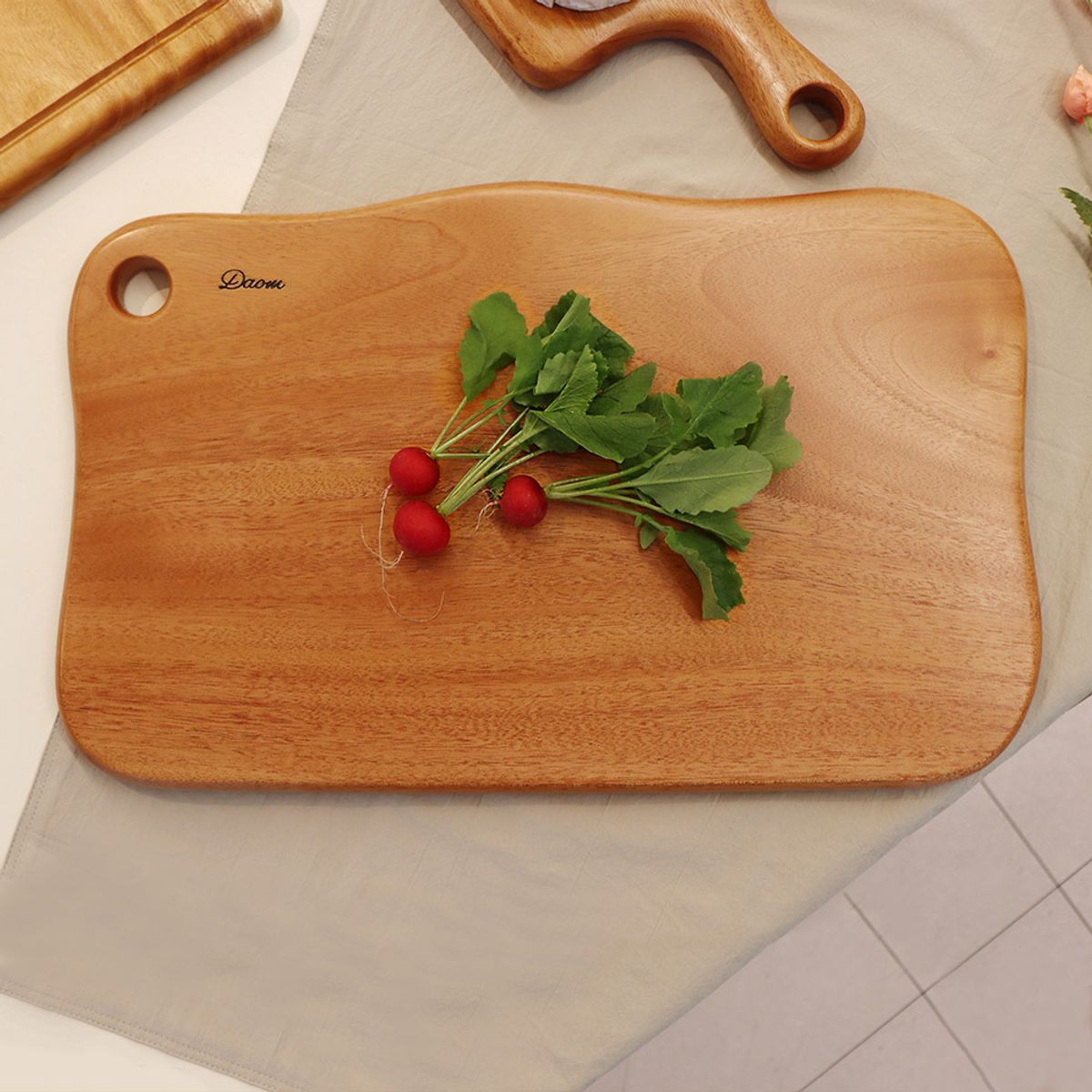 원목 도마가 고급스러워요 세척도 편하고 유용해요 코팅이 깔끔하고 도마가 두툼해서 더 좋아요.
