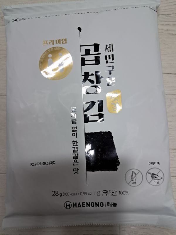 깔끔하게 포장되어 좋아요.그리고 따로 굽지않고 바로 간장소스에 간편하게 먹을수 있어서 너무 편하네요.맛도 곱창김의 식감이 너무 짱입니다~