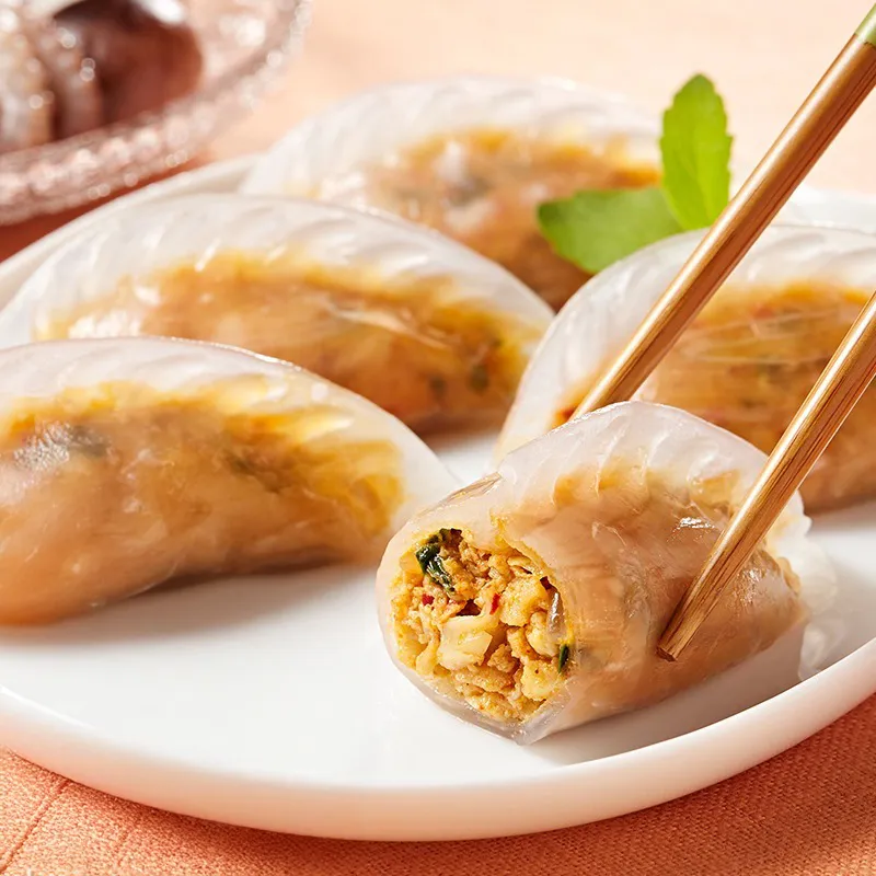 국내에서 제조된 감자 피 투명 만두로, 신선한 재료와 위생적인 시설에서 만들어 안전하게 드실 수 있습니다.
