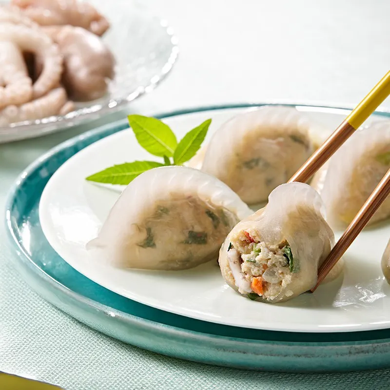 투명한 감자 피와 투명한 만두피에 신선한 소를 가득 담아 만든 특별한 만두예요. 속이 비치는 특별한 비주얼이 식탁에 즐거움을 더해줘요! 감자 본연의 달콤 짭조름한 맛과 담백한 풍미가 어우러져 풍부한 맛을 선사해요
