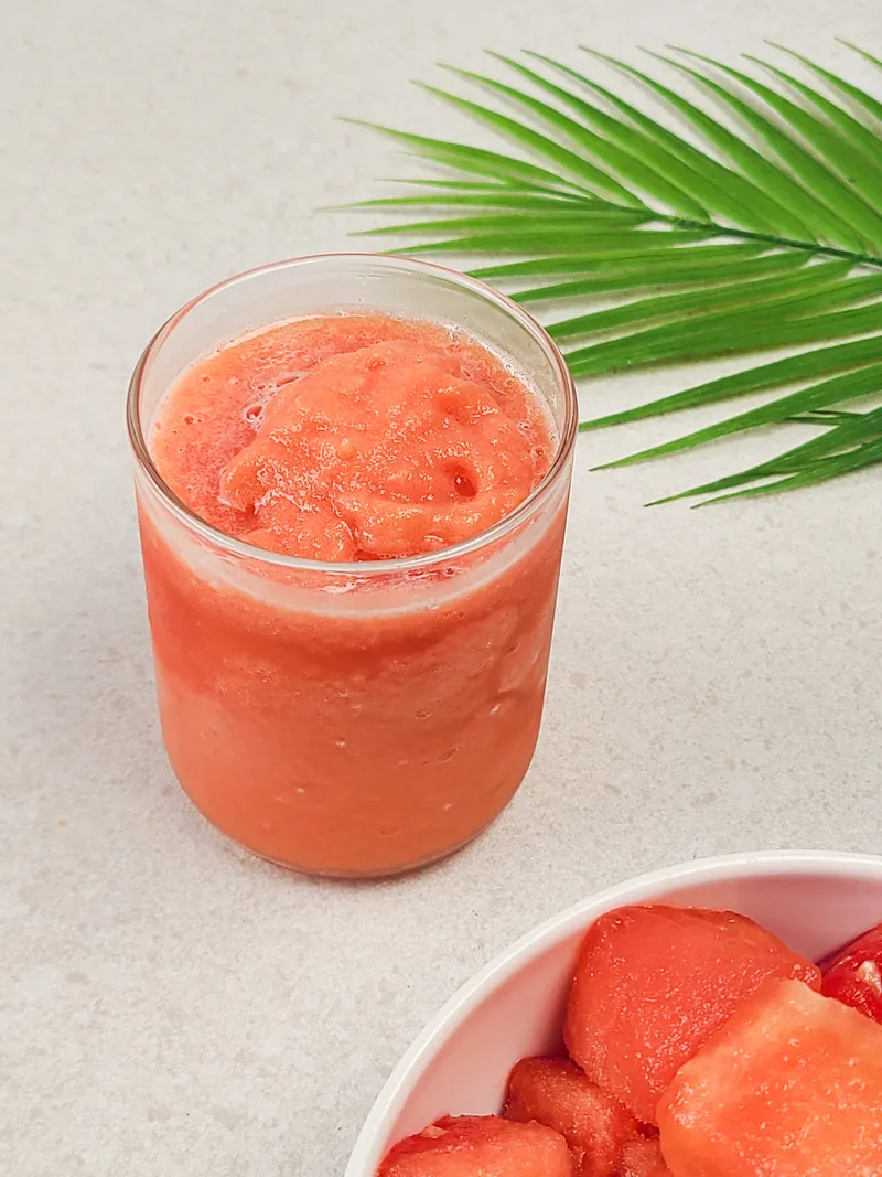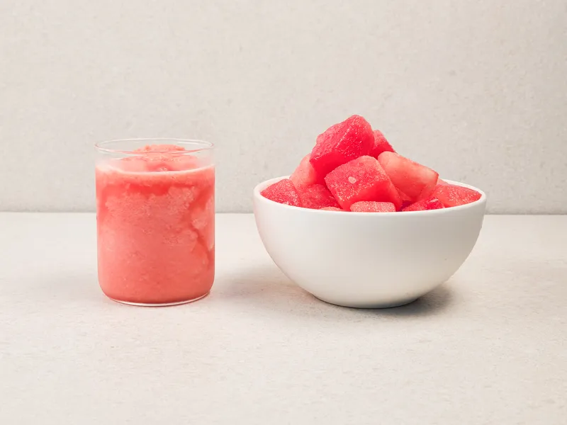 냉동 수박에 시럽을 넣어 믹서에 갈아 수박 주스로 만들어 드셔도 좋고, 우유 또는 사이다와 함께 수박화채로도, 우유 빙수에 올려 빙수 토핑으로 드셔도 별미예요.