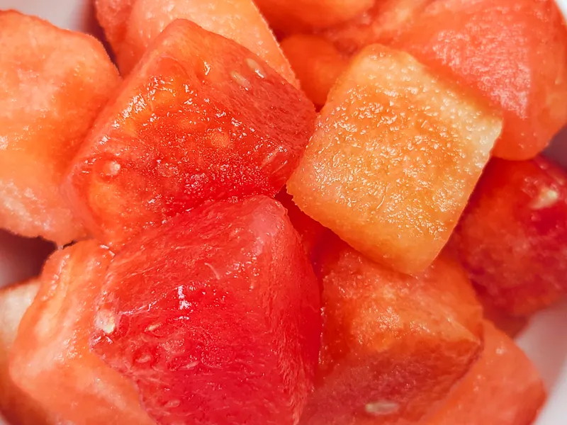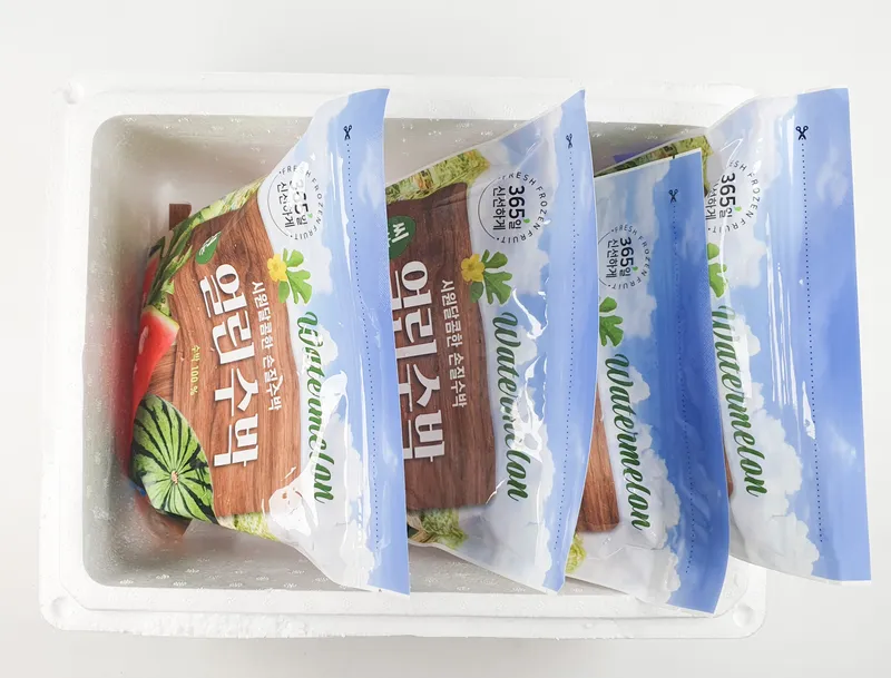 신선한 베트남산 수박을 한 입 크기로 손질해 급속 냉동했어요. 껍질을 제거한 후 먹기 좋게 썰어, 과육 그대로의 달콤함을 간편하게 즐기실 수 있어요. 시원하게 꺼내 먹는 온 가족 간식으로 제격입니다! *수박 겉면의 하얀색 결정은 수박의 당 성분이 용출된 것으로 안심하고 드셔도 됩니다. 해동 시 자연스럽게 사라져요.